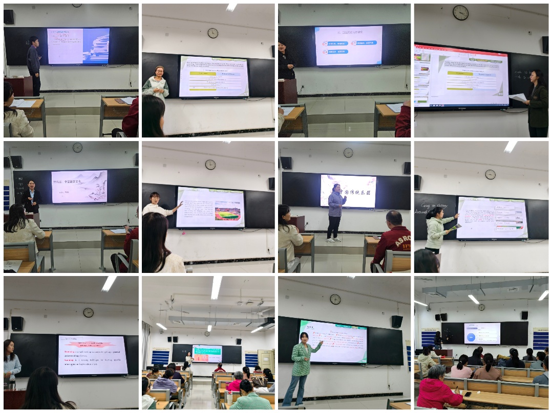 活动现场,多位新任课教师围绕大学英语、中华优秀传统文化、应用文写作、高等数学等课程内容,进行了8-10分钟的无生教学展示。教师们精神饱满,教学内容设计合理,课件辅助得当,展现出扎实的专业素养和良好的教学风貌。