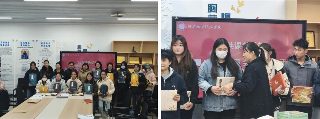 本次活动由公共课教学部主任孙彦萍主持,校关工委副主任左中华、教务处副处长齐新华,评委代表徐其成、王淑明,公共课教学部各教研室主任、教师代表及全体获奖学生参加了会议。校关工委副主任左中华发表致辞,寄语师生以笔记为媒传承优良学风;教务处副处长齐新华对活动成效给予高度评价,肯定了手写笔记在教学相长中的重要作用。“银发引航”组评委代表徐其成教授结合自身教学经历,点评了入围笔记的亮点与价值;“笔尖逐梦”组学生代表魏泽权分享了笔记记录心得,表达了向资深教师学习、深耕知识的决心。随后,与会领导嘉宾为获奖师生颁发了奖品。
